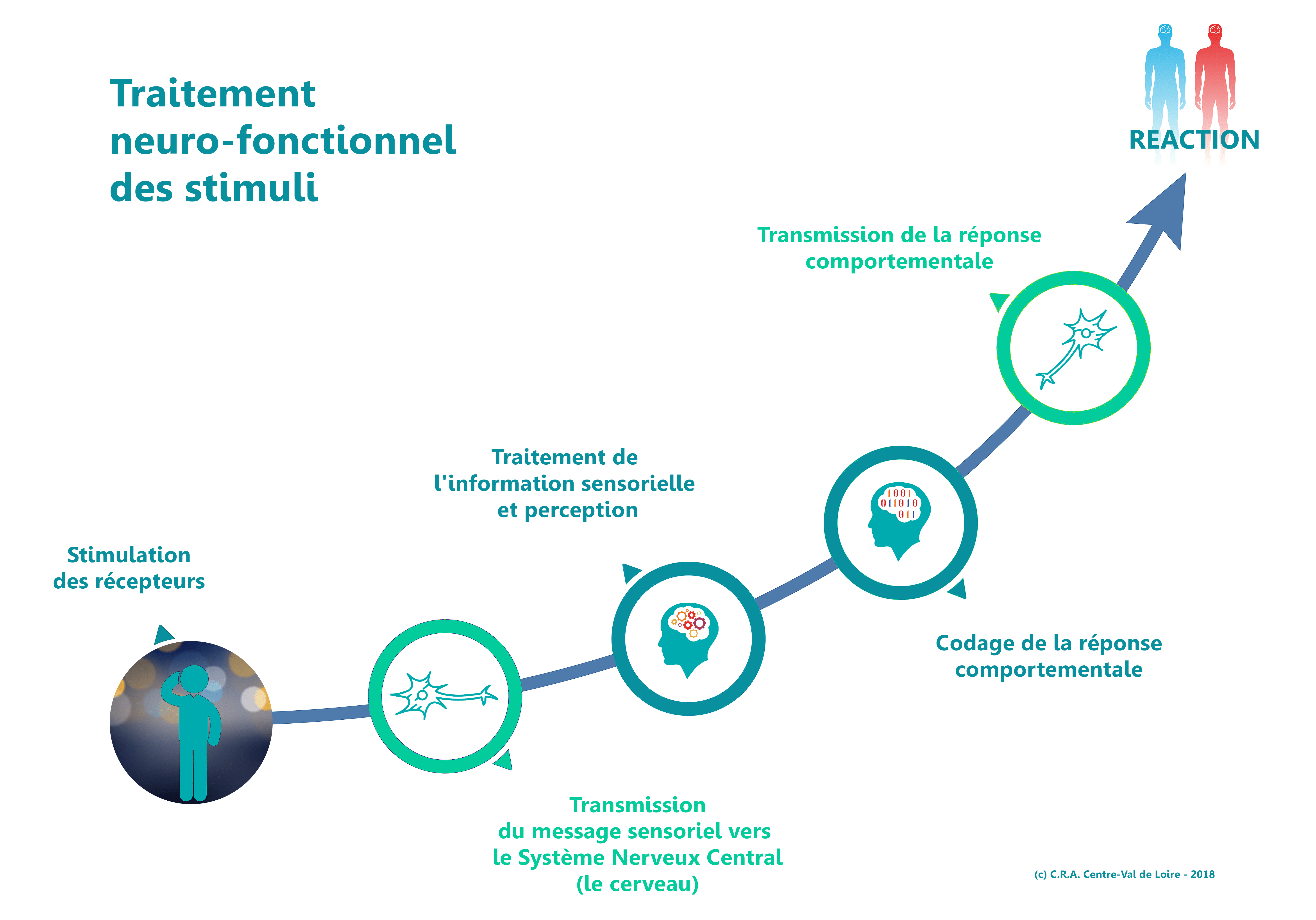 En revanche, les études décrivent un trouble du traitement des informations sensorielles au niveau du Système Nerveux Central avec des difficultés à moduler, à filtrer le message qui est perçu trop ou pas assez fort (inhibition des informations pertinentes et alerte de l’individu sur des informations non pertinentes) et induisant des réactions de désarroi, de négligence ou de fascination.